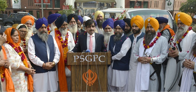 LAHORE: Additional Secretary Shrines Mr. Rana Shahid Saleem addressing the media on the arrival of Sikh Yatrees at JCP Wagha Border.