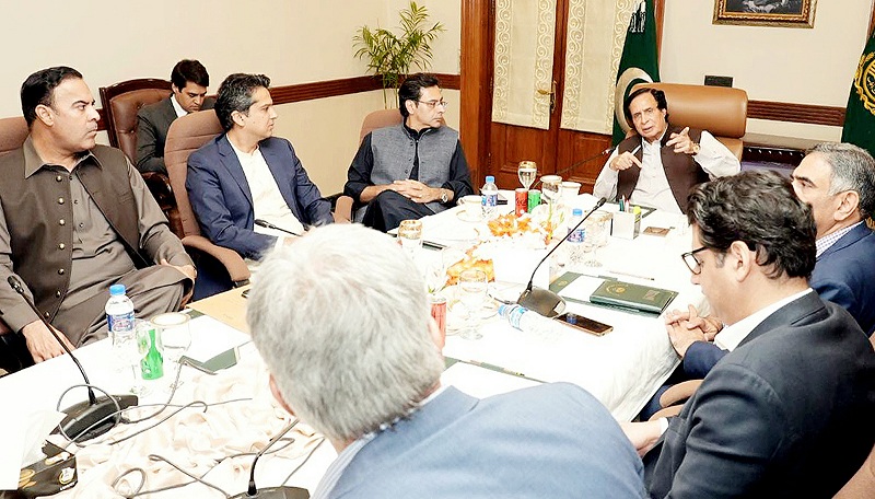 LAHORE: CM Punjab Ch Pervaiz Elahi presiding over a meeting regarding Elevated Expressway Project.