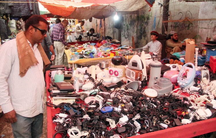 [caption id="attachment_10206" align="aligncenter" width="357"]<img class=" wp-image-10206" src="https://dailydateline.com/news/wp-content/uploads/2022/11/202211071901045151-300x191.jpg" alt="" width="357" height="227" /> KARACHI: Vendors are selling used electronics items at Sadar area in Provincial Capital[/caption]