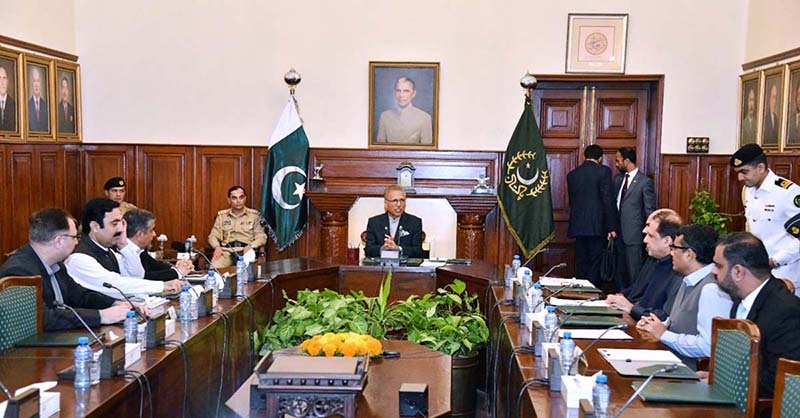 PESHAWAR: President Dr Arif Alvi being briefed about development project and the overall Law and order situation in Khyber Pakhtunkhwa at Governor House.