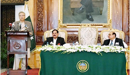 PESHAWAR: president Dr Arif Alvi addressing a seminar on the “Effective Rold of Federal Insurance Ombudsman in the province of Justice” at Governor House.