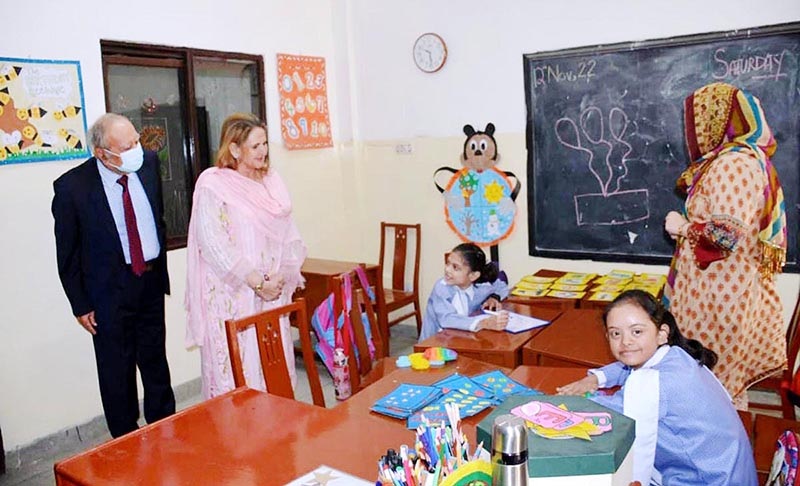 LAHORE: First Lady Samina Alvi visiting the classrooms and interacting with the students of Special Education and Training Center (SETC).