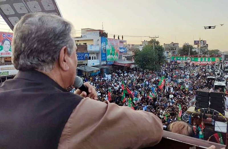 Lalamusa: Vice Chairman PTI, Shah Mehmood Qureshi addressing participants.