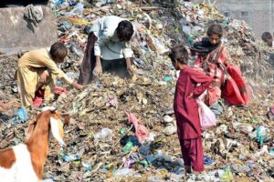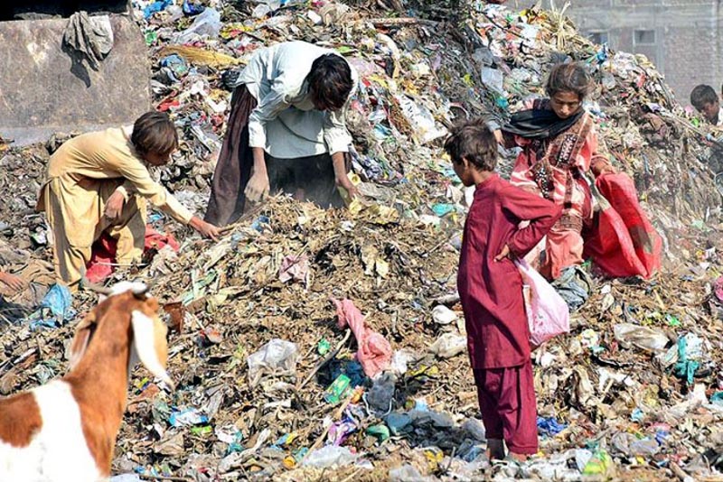 HYDERABAD: Gypsy children searching valuables items from garbage at Latifabad