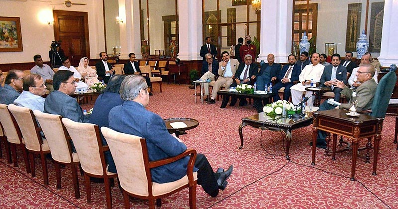 KARACHI: President Dr. Arif Alvi interacting with Editors at Governor House.