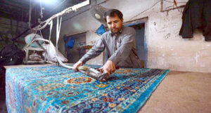 [caption id="attachment_11172" align="aligncenter" width="300"]<img class="size-medium wp-image-11172" src="https://dailydateline.com/news/wp-content/uploads/2022/11/eee-300x161.jpg" alt="" width="300" height="161" /> PESHAWAR: An Afghan worker busy in the finishing process of handmade carpet at his workplace.[/caption]
