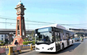 LAHORE: The new electric bus for the citizens is passing through Jail Road.