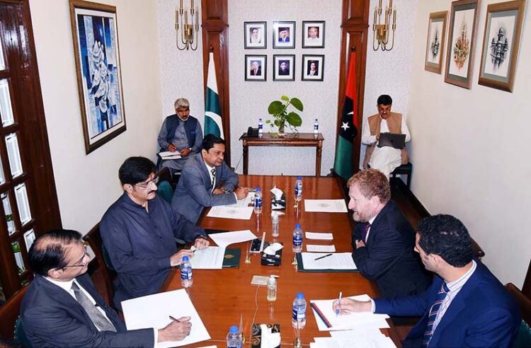 KARACHI: Sindh Chief Minister Syed Murad Ali Shah meets with World Bank team led by its Regional Director Mr John Roome at CM House. Country Director Najy Bensassine joined the meeting through video link.