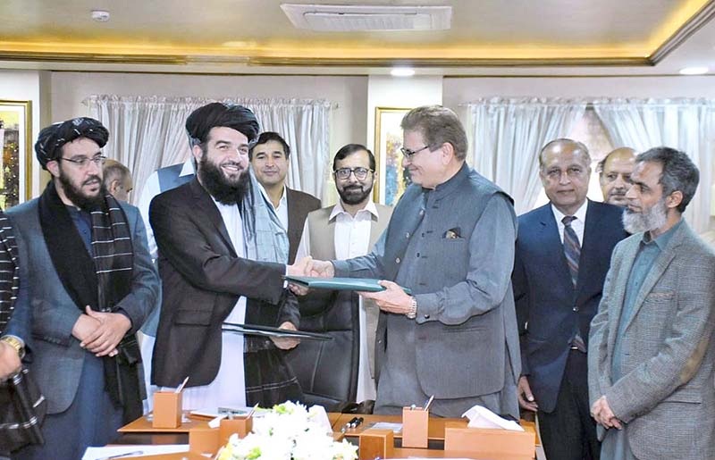 ISLAMABAD: Afghan Minister for Health, Dr Qalandar Ibad and Ambassador Mohammad Sadiq Special Representative for Afghanistan exchanging notes regarding training of Afghan Doctors in a ceremony.
