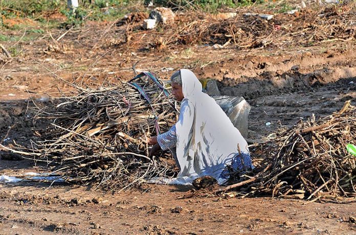 ISLAMABAD: An elderly woman collecting and binding dry woods for domestic use along Srinagar Highway