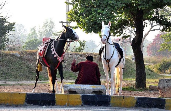 ISLAMABAD: A vendor along with their horses waiting for the customers at main gate of Rawal lake