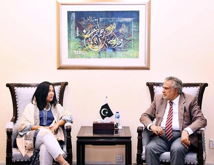 ISLAMABAD: Ms. Yasmin Qureshi, Member Parliament UK-House of Commons/ Co-Chair of All Parties Parliamentary Group on Pakistan called on Federal Minister for Finance and Revenue, Senator Mohammad Ishaq Dar at Finance Division.