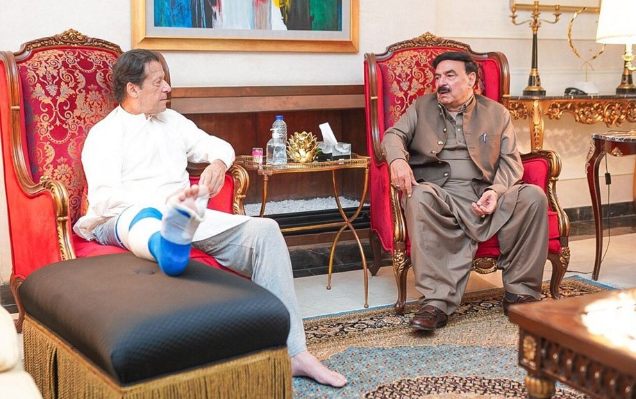 LAHORE: Sheikh Rahid Ahmed in a meeting with Pakistan Tehreek-e-Insaf (PTI) Chairman Imran Khan.
