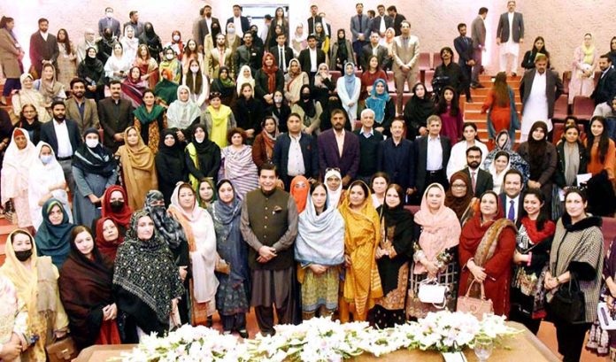 ISLAMABAD: Speaker National Assembly Raja Pervez Ashraf in a group photo with participants of National Conference on “Promoting Meaningful Role of Women Parliamentarians in Peace Building & Sustainable Development”.