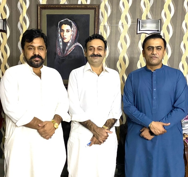 KARACHI: Pakistan Peoples Party (PPP) leader Sardar Yasir Khan Babar seen in a photograph with Sindh Chief Minister's Adviser on Zakat and Usher Fayaz Ali Bhatt during a meeting here on Saturday. Chairman District Zakat and Usher Committee Hyderabad Umer Maula Bakhsh Chandio is also present on this occasion.