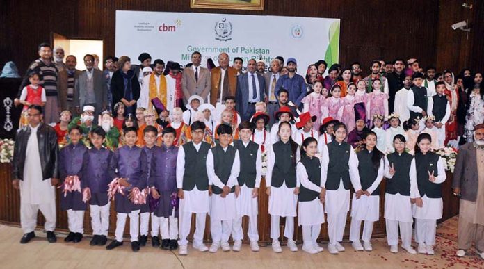 ISLAMABAD: A Group photo with Federal Minister for Human Rights Mian Riaz Hussain Pirzada during the seminar on “International Day of Persons With Disabilities” organized by Directorate General of Special Education at National Library of Pakistan.