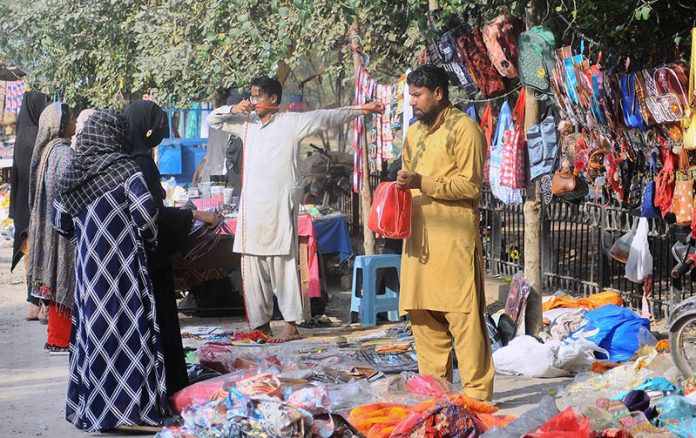 MULTAN: Women customers selecting hand bags from a roadside vendor