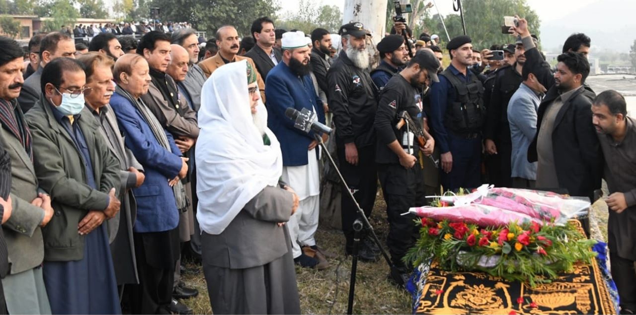 KOTLI: Speaker NA Raja Pervez Ashraf, Advisor to PM on Kashmir and Gilgit-Baltistan Affaris Qamar Zaman Kaira, Azad Kashmir President Barrister Sultan Mehmood and former Azad Kashmir PM Raja Farooq Haider offering fueral prayer for the father of Azad Kashmir President Chaudhry Muhammad Yasin.