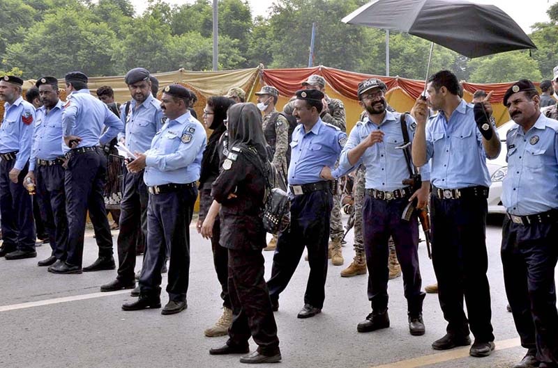 Lady police personnel were also deployed for checking of women and there are separate entry points for them to enter the procession. DIG Operations Sohail Zafar Chattha was supervising all security arrangements for the procession. IG Islamabad said that Islamabad Capital Police is all time ready to ensure peace in Islamabad. No element will be allowed to disturb the law and order situation im capital, he added. NNI