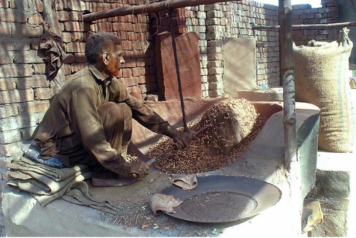 MULTAN: Labourer is busy in roasting peanuts at his workplace