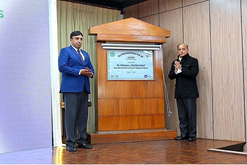 ISLAMABAD: Prime Minister Muhammad Shehbaz Sharif inaugurates Insaf Shah Pre-Fabricated Housing Project donated for the Flood Affectees of Tank by Menzies Aviation Group and SPARS Group.