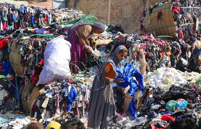 HYDERABAD: Female labourer sorting old clothes at Site Area