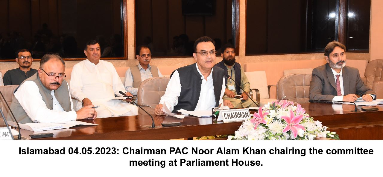 Islamabad Chairman PAC Noor Alam Khan chairing the committee meeting at Parliament House.