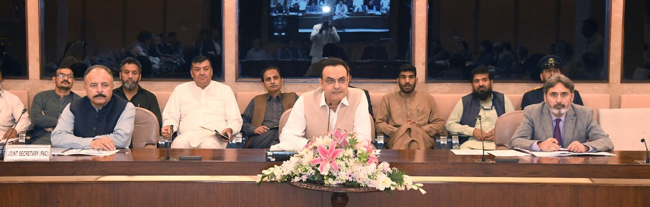 Islamabad : Chairman PAC Noor Alam Khan chairing the committee meeting at Parliament House.