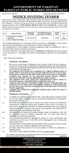 terms and conditions, only firms that have completed two “same nature works” of equal value in the past five years are eligible to bid for the construction project. Furthermore, an Electrical License holder from the Islamabad Region, with a stable financial status, a turnover of 50 million, and a bank account with any scheduled bank in Islamabad or Rawalpindi holding a credit of one million, is also required.