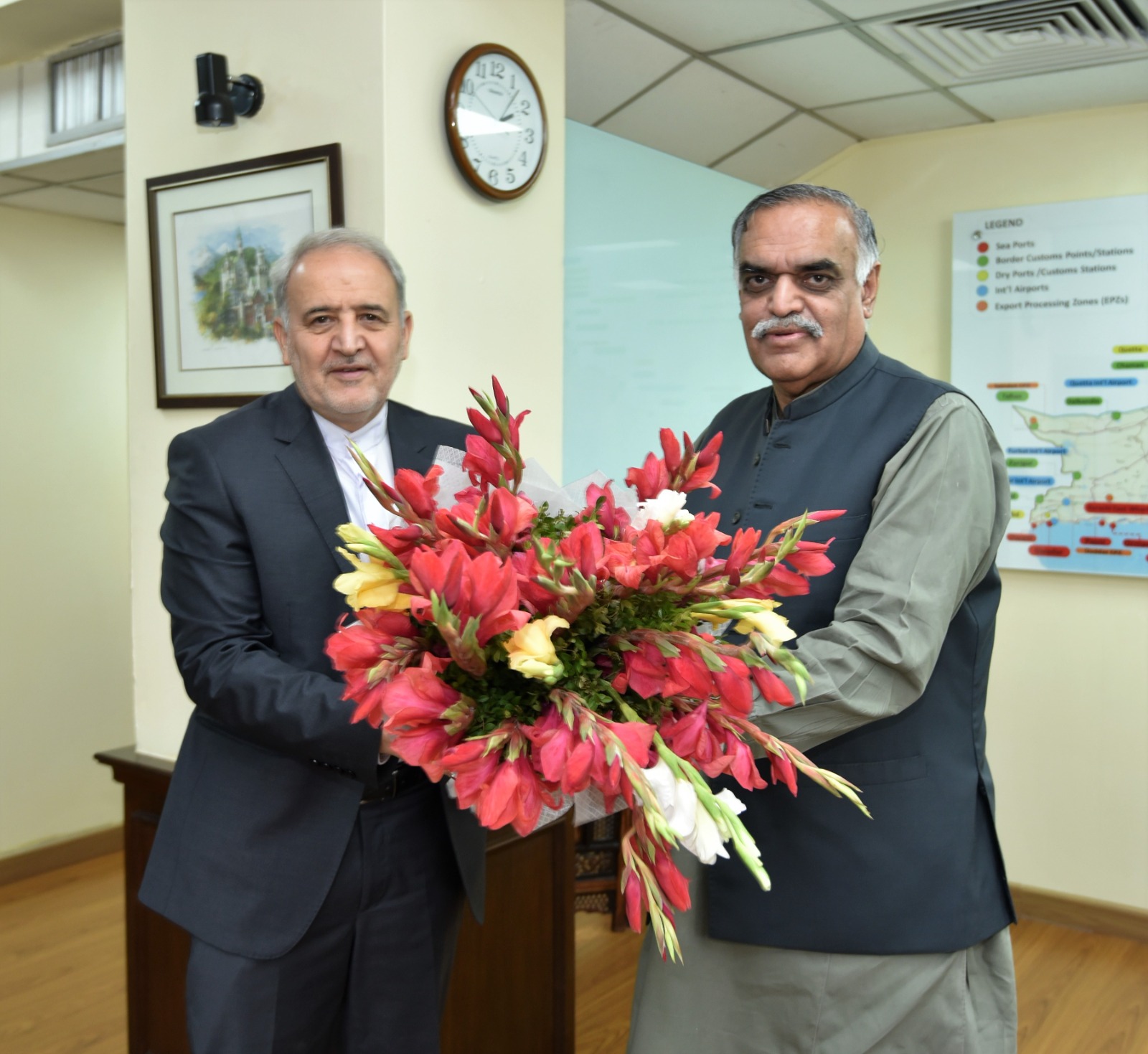 ISLAMABAD (Staff Reporter) Ambassador of Iran to Pakistan Dr. Raza Amiri Mughdam on Friday met Chairman Federal Board of Revenue Malik Amjad Zubair Tawana at FBR Headquarters Islamabad in which Member (Admin), Member Customs (Operations) And senior FBR officials were present. During the meeting, the two sides discussed issues related to customs, effective border management and smooth flow of cross-border trade between the two countries, especially through the Mirjave-Taftan crossing point. The parties also discussed the possibility of installing more gates at the Mir Jawa-Taftan crossing point to ensure smooth movement of cross-border trade and pilgrims. The Iranian ambassador said that the activation of the Ramadhan-Gabad crossing point can further increase the bilateral trade between the two countries. The parties also agreed to further increase the trade between the two brotherly countries. Chairman FBR assured full cooperation to resolve the issues related to customs for the promotion of bilateral trade. It was agreed in the meeting that the border The relevant authorities of the two countries will hold another meeting by the end of this month to resolve all issues related to