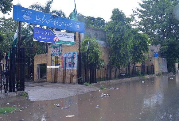 SARGODHA: August11 -A view of accumulated rain water front of MC office after torrential rain lashed the different parts of the city.