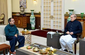 Islamabad: Minister for Railways Sardar Awais Ahmed Khan Laghari calls on Prime Minister Muhammad Shehbaz Sharif on 13 March 2024.