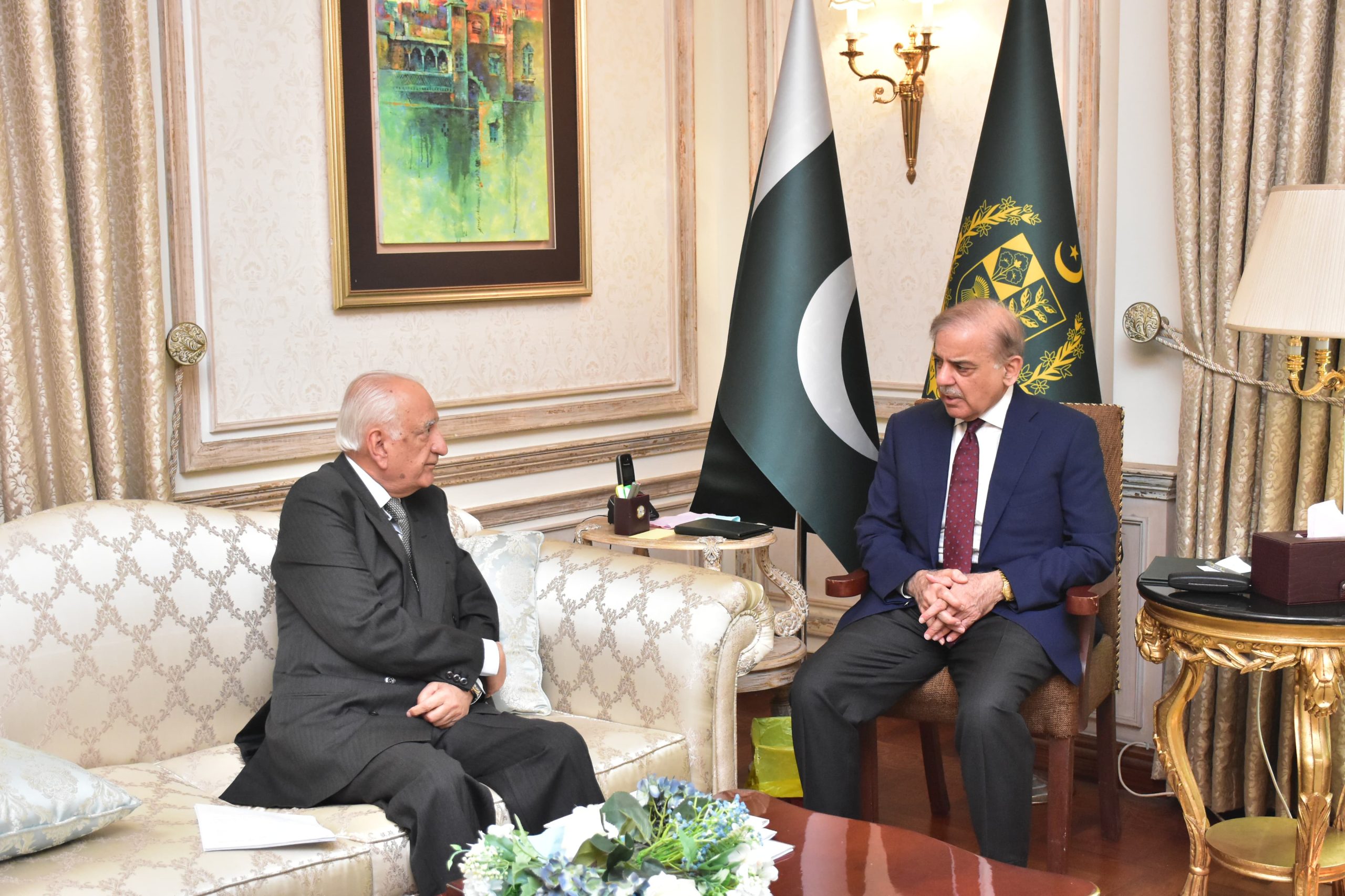 Lahore: Former Governor of the Punjab Mr. Shahid Hamid calls on Prime Minister Muhammad Shehbaz Sharif on 24 March 2024.