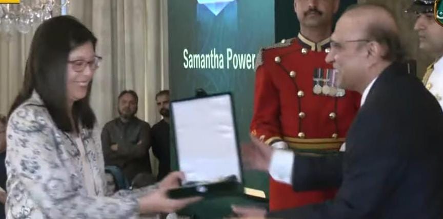 ISLAMABAD:?On the occasion of Pakistan Day, the President of the Islamic Republic of Pakistan bestowed the prestigious ‘Hilal-e-Quaid-i-Azam’ (Leadership) award on USAID Administrator Samantha Power for her leadership in supporting Pakistan during the devastating floods of 2022. This significant event, held in Islamabad, symbolized the profound partnership between the United States and Pakistan and their shared commitment to progress and collaboration. Former USAID Deputy Mission Director, Michael Rossman, was also recognized with an award.