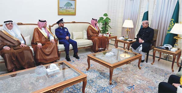 Islamabad: Minister of Defense of Kingdom of Saudi Arabia His Royal Highness Prince Khalid bin Abdulaziz Al Saud calls on Prime Minister Muhammad Shehbaz Sharif on 23 March 2024.