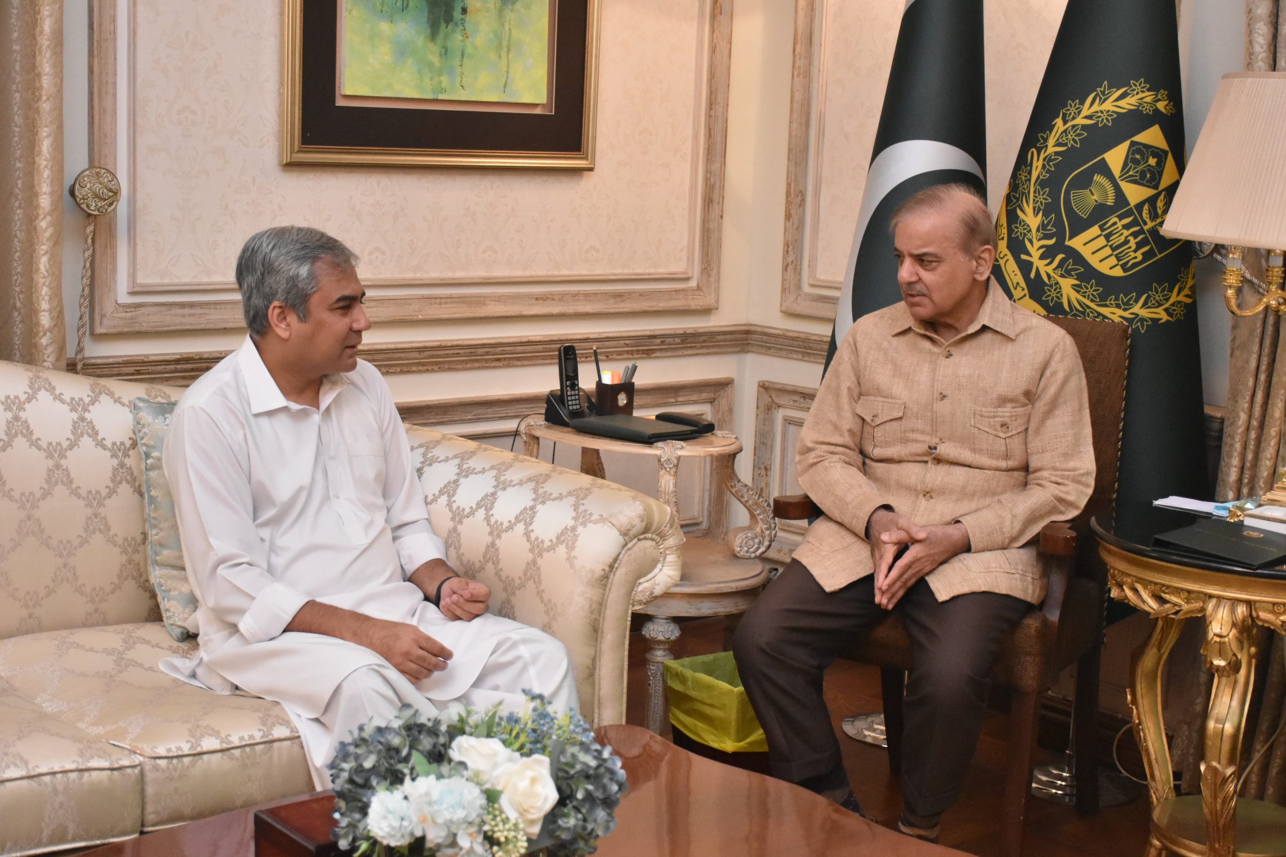 Lahore: Federal Minister for Interior and Narcotics Control Syed Mohsin Raza Naqvi calls on Prime Minister Muhammad Shehbaz Sharif on 11 April 2024.