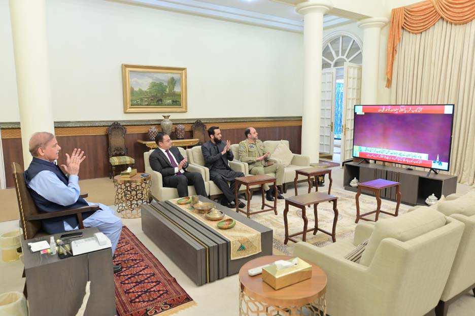 Prime Minister Muhammad Shehbaz Sharif observes the historic launch of Pakistan’s first satellite mission to the moon, titled “iCube Qamar”, in Islamabad on May 3, 2024.
