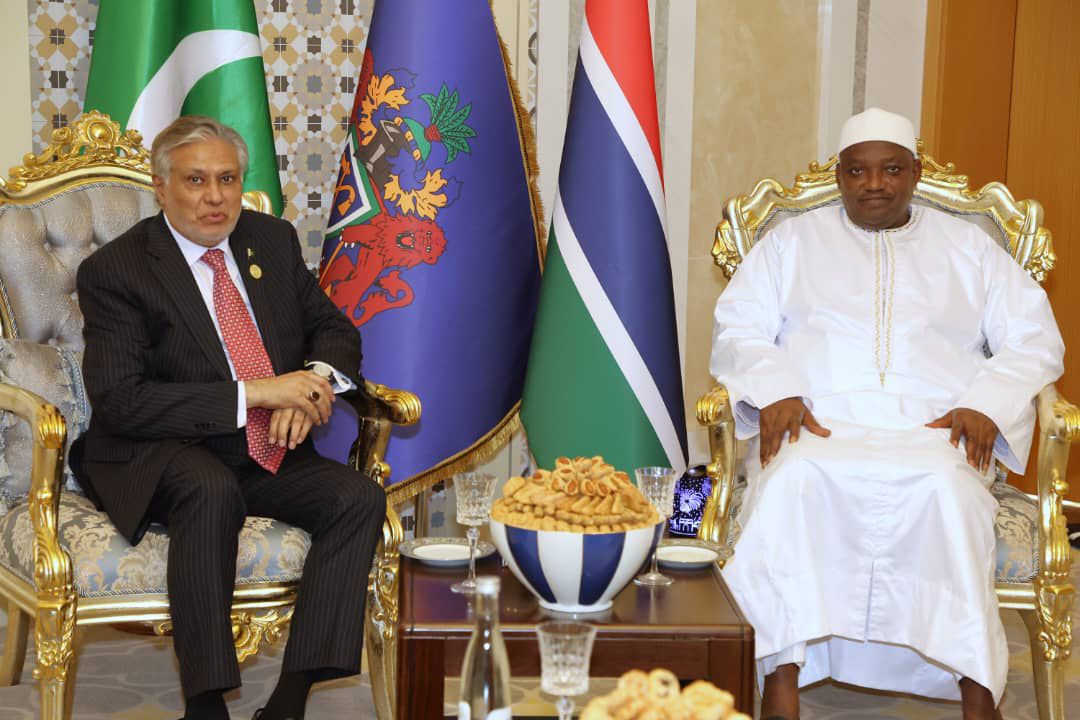 ISLAMABAD: Deputy Prime Minister and Foreign Minister Senator Mohammad Ishaq Dar held a bilateral meeting with President of the Republic of The Gambia Adama Barrow on the sidelines of the 15th OIC Islamic Summit Conference being held in Banjul, The Gambia.