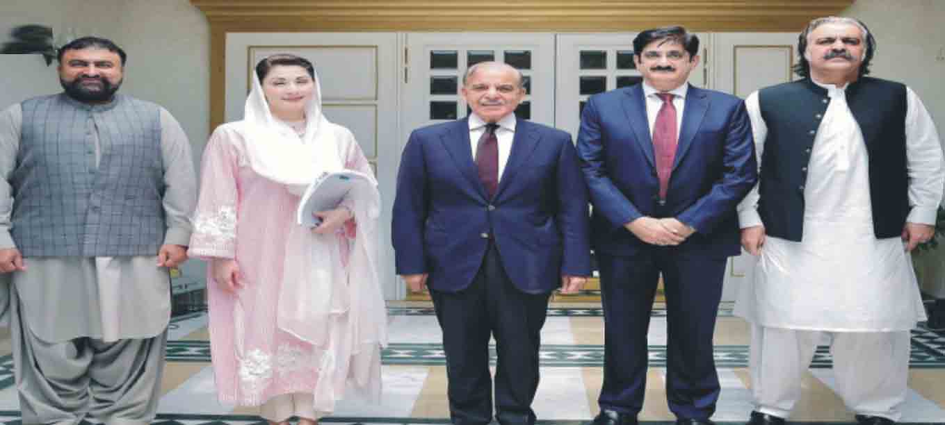 Prime Minister Muhammad Shehbaz Sharif in a group photo with the Chief Ministers of all four provinces prior to the meeting of National Economic Council in Islamabad on 10 June 2024.