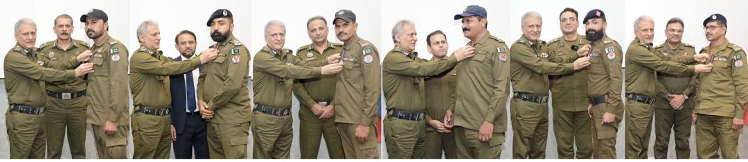 On the directives of Inspector General of Punjab Police Dr. Usman Anwar, thirteen brave Punjab Police personnel who risked their lives in the line of duty have been declared as “Ghazis”.In a ceremony held at the Central Police Office, IG Punjab Dr. Usman Anwar awarded Ghazi Medals to the valiant officers and personnel for their exemplary courage and dedication to duty. Director General of Excise, Taxation, and Narcotics Control Punjab, Faisal Fareed, specially attended the ceremony.The personnel honored with Ghazi medals include Constable Muhammad Abbas, Driver Constable Abdul Kaleem, Constable Muhammad Arslan, and Rashid Shah from Multan, ASI Asghar Ali, Constable Hamza Abbas, Sub-Inspector Zeeshan Elahi, and ASI Nasir Mahmood from Khanewal,  Constable Zahid Rasool from Lodhran, ASI Muhammad Ashraf from Vehari, Abdul Rauf from Nankana, ASI Abdul Qadir and Constable Muhammad Azmat from Okara,  Constable Nadeem Akhtar and Constable Salman Shaukat from Kasur district.