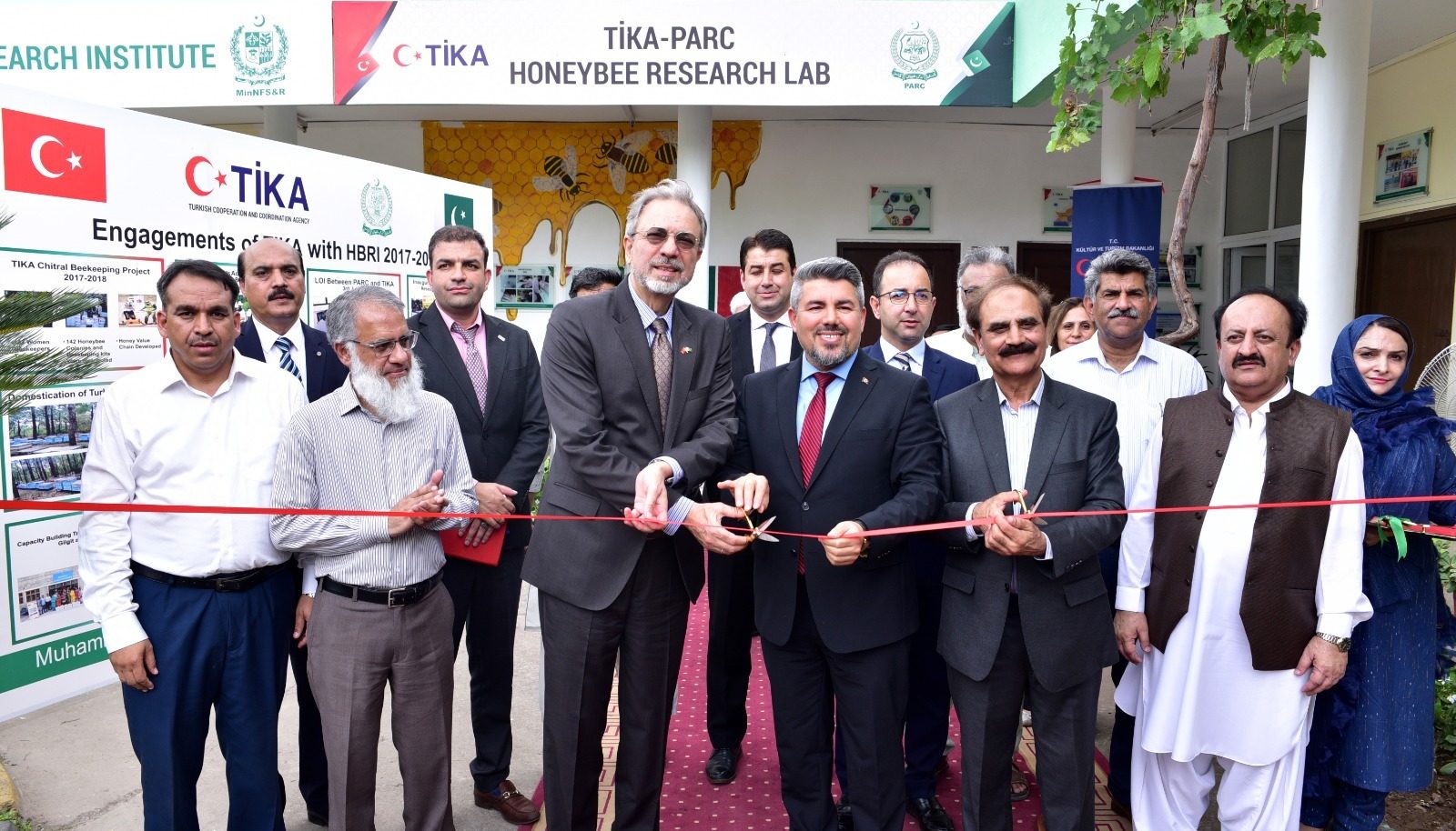 His Excellency, Ambassador of Türkiye to Pakistan Prof. Dr. Mehmet Paçacı inaugrating Bee Hive Products Laboratory at the Honeybee Research Institute (HBRI) along with Chairman PARC Dr. Ghulam Muhammad Ali, Vice President of TİKA Dr. Ümit Naci Yorulma, TİKA Pakistan Country Head Muhsin Balcı, Senior scientists from PARC and officials from Embassy of Turkiye, at NARC Islamabad on (Dte of PR&P PARC)