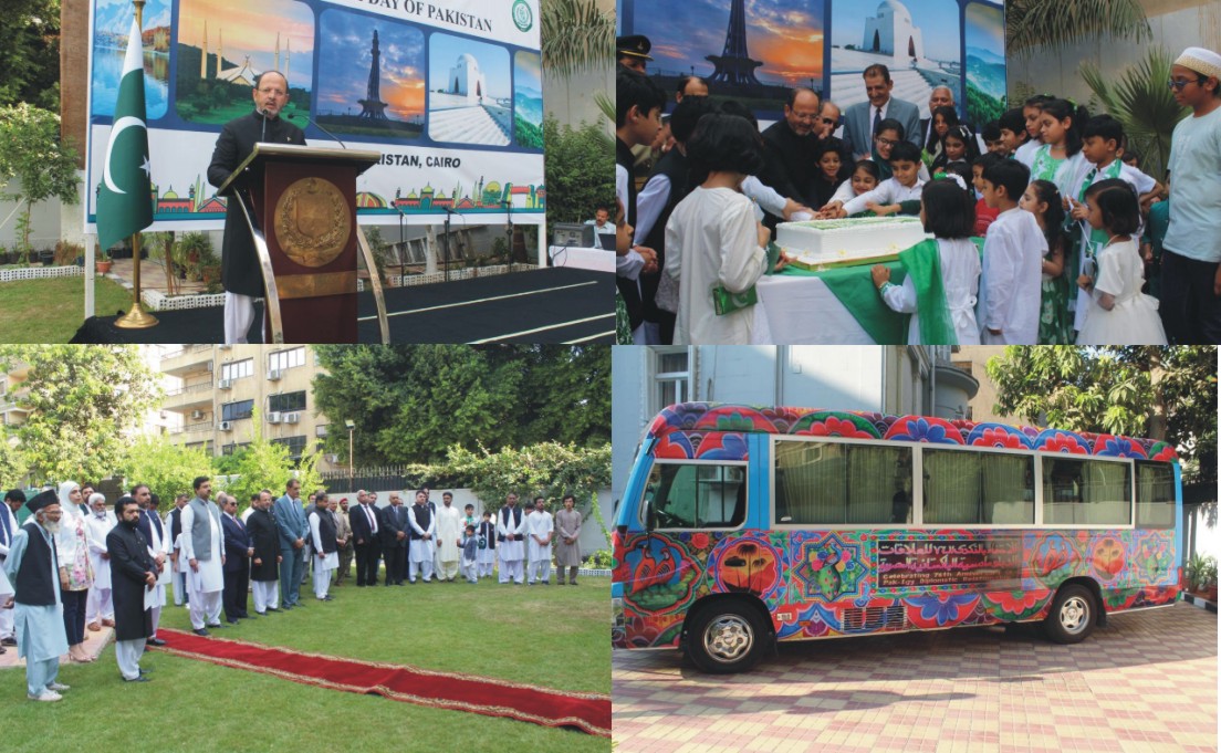 Ambassador Sajid Bilal also noted with satisfaction the deepening political, trade, investment, defence and people-to-people linkages between Pakistan and Egypt. He mentioned that the two countries are celebrating 76th Anniversary of the establishment of Pakistan-Egypt diplomatic relations this year.The Ambassador thanked the Pakistani community in Egypt for their valuable contributions for the progress and development of Pakistan. He appreciated their active role in building bridges between Pakistan and Egypt.The Ambassador also inaugurated the especially decorated bus with famous truck art of Pakistan during the ceremony. At the conclusion of the Flag Hoisting Ceremony, Pakistani community members, media personnel and the Embassy team joined the Ambassador to cut the Independence Day cake.The event was attended by members of the Pakistani community from different walks of life across Egypt, academia, Egyptian media personnel, and the Embassy officials.