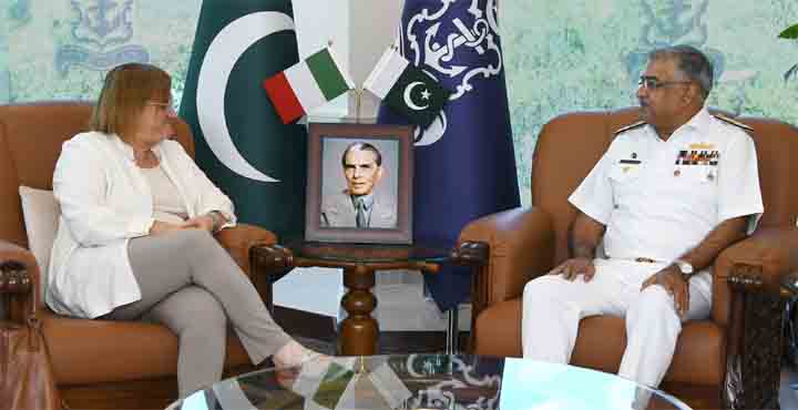Chief of the Naval Staff Admiral Naveed Ashraf exchanging views with H.E. Ms Marilina Armellin Ambassador of Italy at Naval Headquarters Islamabad