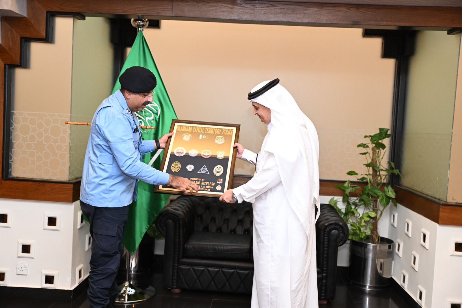 Islamabad: Ambassador of the Khadim Harameen Sharif to Pakistan, Mr. Nawaf Saeed Al-Maliki, welcomed IG Islamabad Police, Mr. Syed Ali Nasir Rizvi. During the meeting, a commemorative shield was presented to the esteemed ambassador.