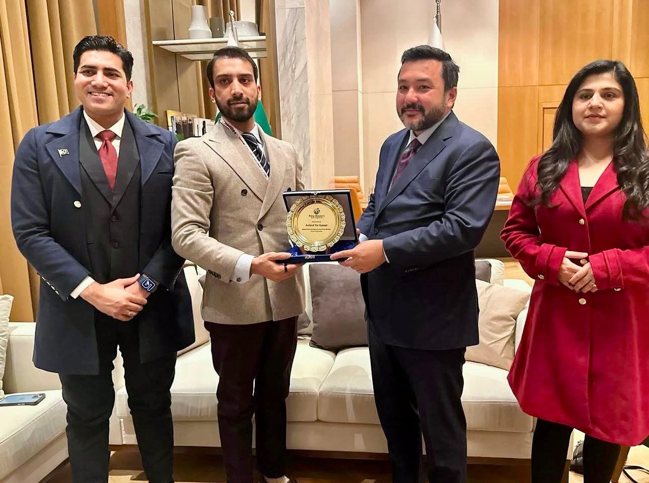 Lahore:The Special Representative to the Prime Ministerโ€™s Youth Programme, Mr. Rizwan Anwar, led Pakistanโ€™s delegation in a significant meeting with H.E. Taha Ayhan, President of the Islamic Cooperation Youth Forum (ICYF), under the Vision of H.E Mian Shehbaz Sharif for Youth Development during the Suรงa OIC Youth Capital 2024 closing ceremony in Azerbaijan.The delegation, comprising Ms. Maha Jamil, Mr. Asfand Yar Naseer Special Representatives and other Youth Delegate Members highlighted Pakistanโ€™s flagship initiatives under the Prime Ministerโ€™s Youth Programme (PMYP). The dialogue centered on fostering mutual collaboration to enhance skills, promote innovation, and empower youth within Pakistan and the broader Muslim world.In a gesture of goodwill, Mr. Asfand Yar Naseer presented a souvenir to H.E. Taha Ayhan on behalf of PMYP. During the meeting, H.E. Taha Ayhan also held a telephonic discussion with H.E. Rana Mashhood Ahmad Khan, Chairman of PMYP, to underscore the importance of coordinated efforts for advancing youth development across various domains.Both sides reaffirmed their commitment to initiating joint projects, including entrepreneurship and startup forums, aimed at cultivating leadership, innovation, and opportunities for young individuals globally.This engagement exemplifies the shared resolve of Pakistan and ICYF to build a future rooted in collaboration, growth, and empowerment for the next generation.