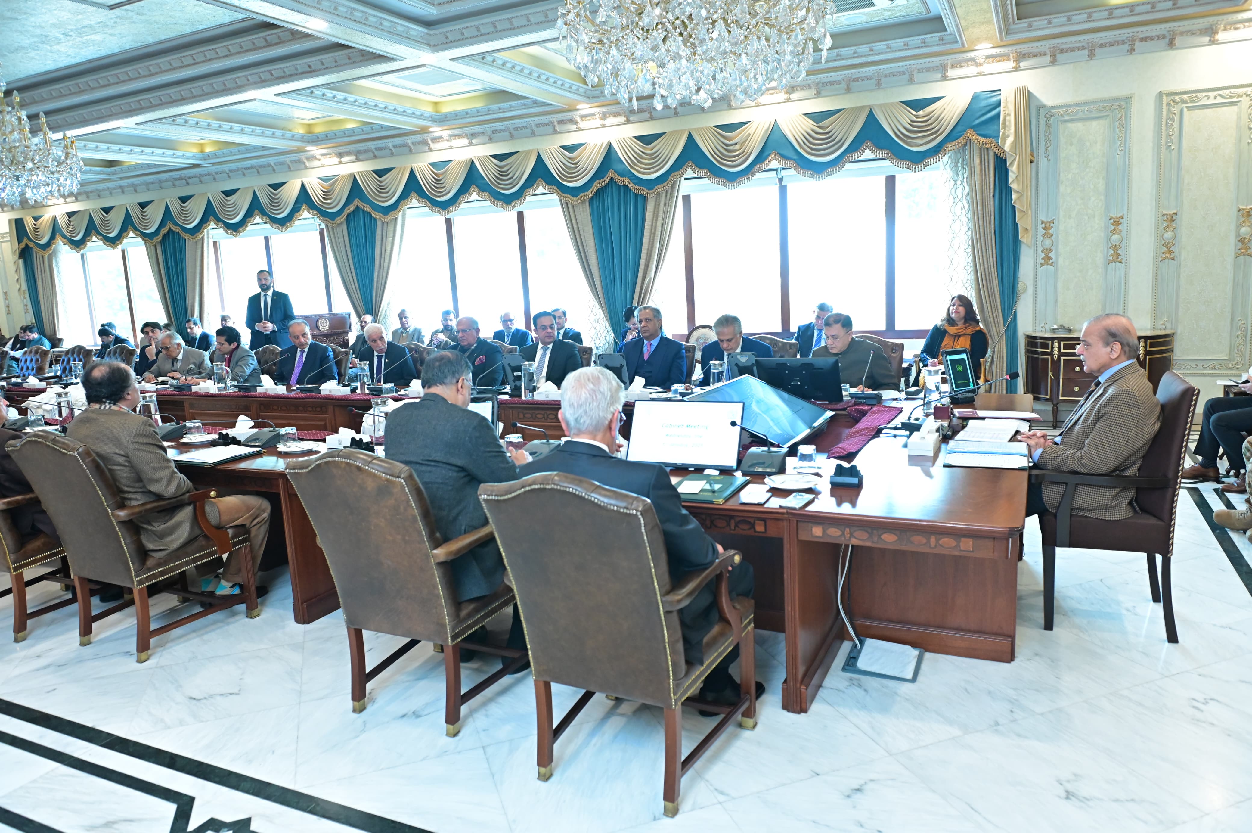 During the meeting, the prime minister directed that the details of public sector imports from Gwadar Port, over the past three months, should be presented in the next meeting of the cabinet.The cabinet gave its principled approval for legislation on amendments to Section 3(7) of the Pakistan Telecommunication (Reorganization) Act, on the recommendation of the cabinet division/secretariat.It also recommended approval of the regulations for the appointment of Information Group officers as Press Officers at Pakistan’s diplomatic missions abroad, proposed by the Ministry of Information and Broadcasting.These regulations would ensure a more transparent and merit-based process for the appointment of Information Group officers at Pakistan’s foreign missions.The cabinet approved the registration/recognition of Liaquat University of Medical and Health Sciences, Thatta, on the recommendation of the Ministry of National Health.The cabinet, in light of the judgment in Human Rights Case No. 623-P/2017 by the honourable Supreme Court of Pakistan and the recommendation of the Ministry of National Health, approved the reconstitution of a committee to determine the prices of life-saving medical equipment.On the recommendation of the Ministry of National Food Security and Research, the cabinet approved sending the National Food Safety, Animal and Plant Health Authority Bill to Parliament.It also ratified the decisions taken in the meeting of the Cabinet Committee on Legislative Cases held on December 17, 2024. However, the ratification of amendments to the Citizenship Act has been deferred.The cabinet accorded its approval to the decisions taken in the meeting of the Economic Coordination Committee held on December 18.The cabinet ratified the decisions made in the meeting of the Cabinet Committee on State-Owned Enterprises held on December 24.