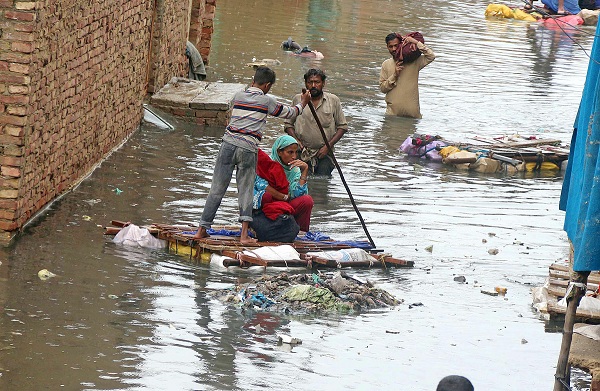 HYDERABAD: Rain affected people facing problems due to rain water inundated in their houses and use temporary boats for coming out from their houses at Mehar Ali Society after heavy rains, in the city.