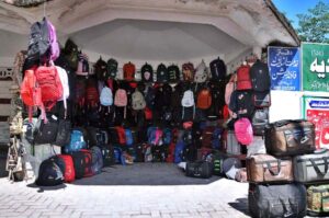 APP06-200822 ISLAMABAD: August 20 - A vendor selling bags at his roadside setup. APP photo by Saeed-ul-Mulk
