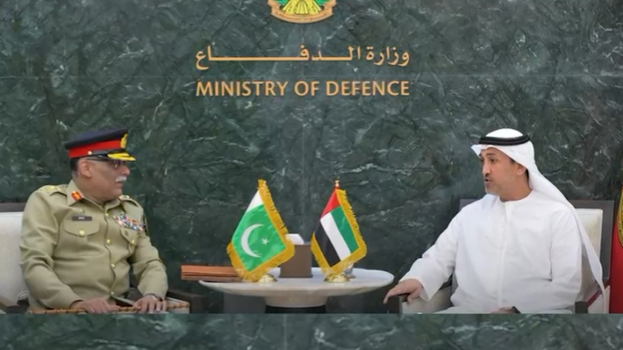 RAWALPINDI: Chairman Joint Chiefs of Staff Committee (CJCSC) General Sahir Shamshad Mirza, NI (M), who is on an official visit to the United Arab Emirates (UAE), called on Mohammed Fadal Al Mazrouei, Minister of State for Defence, UAE and Lieutenant General Issa Saif Mohammed Al Mazrouei, Chief of Staff of the UAE Armed Forces and Dr Nasser Humaid Al Nuaimi, Secretary General of Tawazun Council.According to a news release of Inter Services Public Relations (ISPR), the CJCSC also visited Tawazun Industrial Park and witnessed different manufacturing facilities. During separately-held meetings, the discussions focused on regional security environment and strengthening of bilateral defense cooperation.The civil and military leadership of UAE appreciated the professionalism of Pakistan Armed Forces and lauded their sacrifices in the fight against terrorism.
