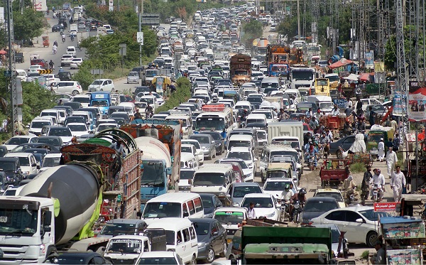 RAWALPINDI: A view of massive traffic jam at G.T road in the city.
